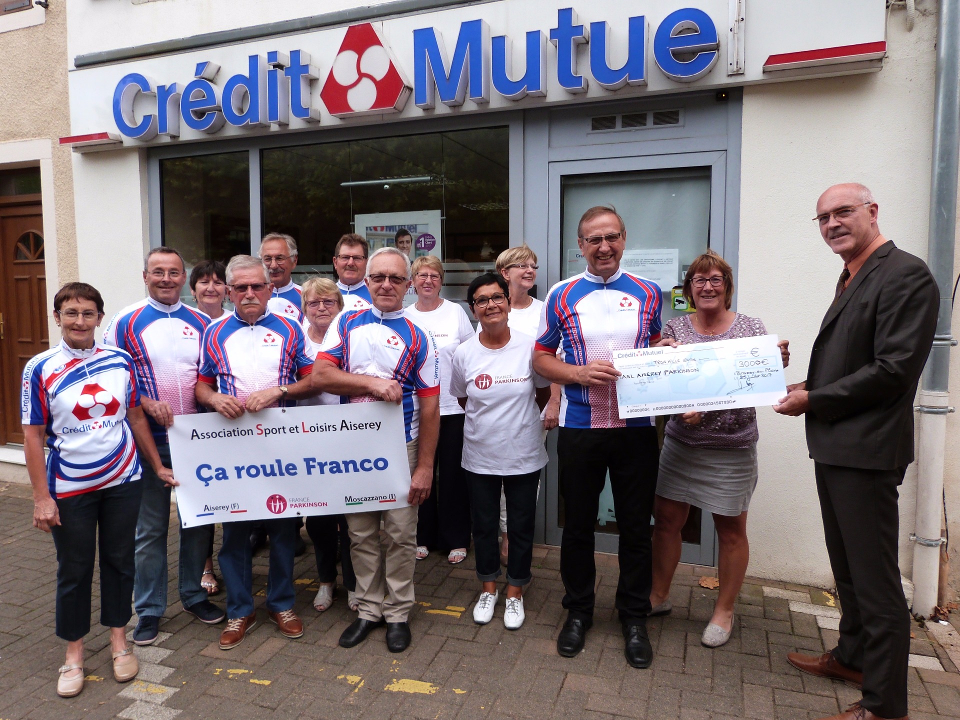 25/07/2017 : réception très sympathique à la caisse du Crédit Mutuel de Brazey-en-Plaine avec la remise d'un chèque de 3000 € par Mr Bruno Saniez directeur. Un grand merci pour la générosité du Crédit Mutuel.