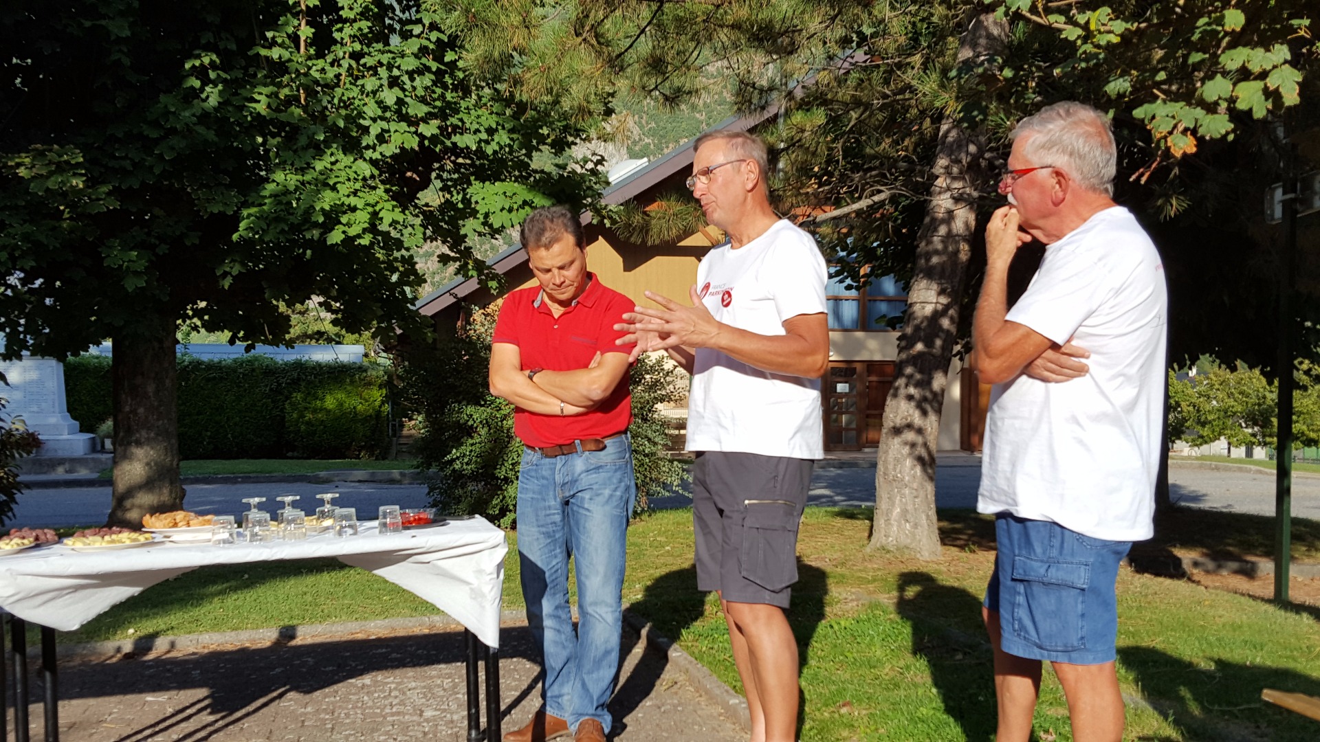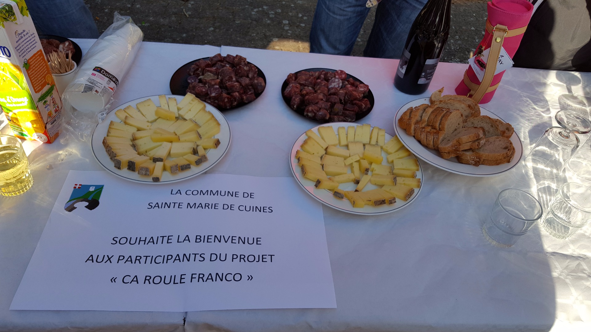 A notre arrivée à Sainte Marie de Cuines, nous sommes reçus par la municipalité. Un grand moment d'échanges sur la maladie de Parkinson entre Franco et Henri malade également et avec les membres de l'équipe municipale. Le tout se faisant autour du pot de l'amité et un échange de cadeaux: un grand moment.