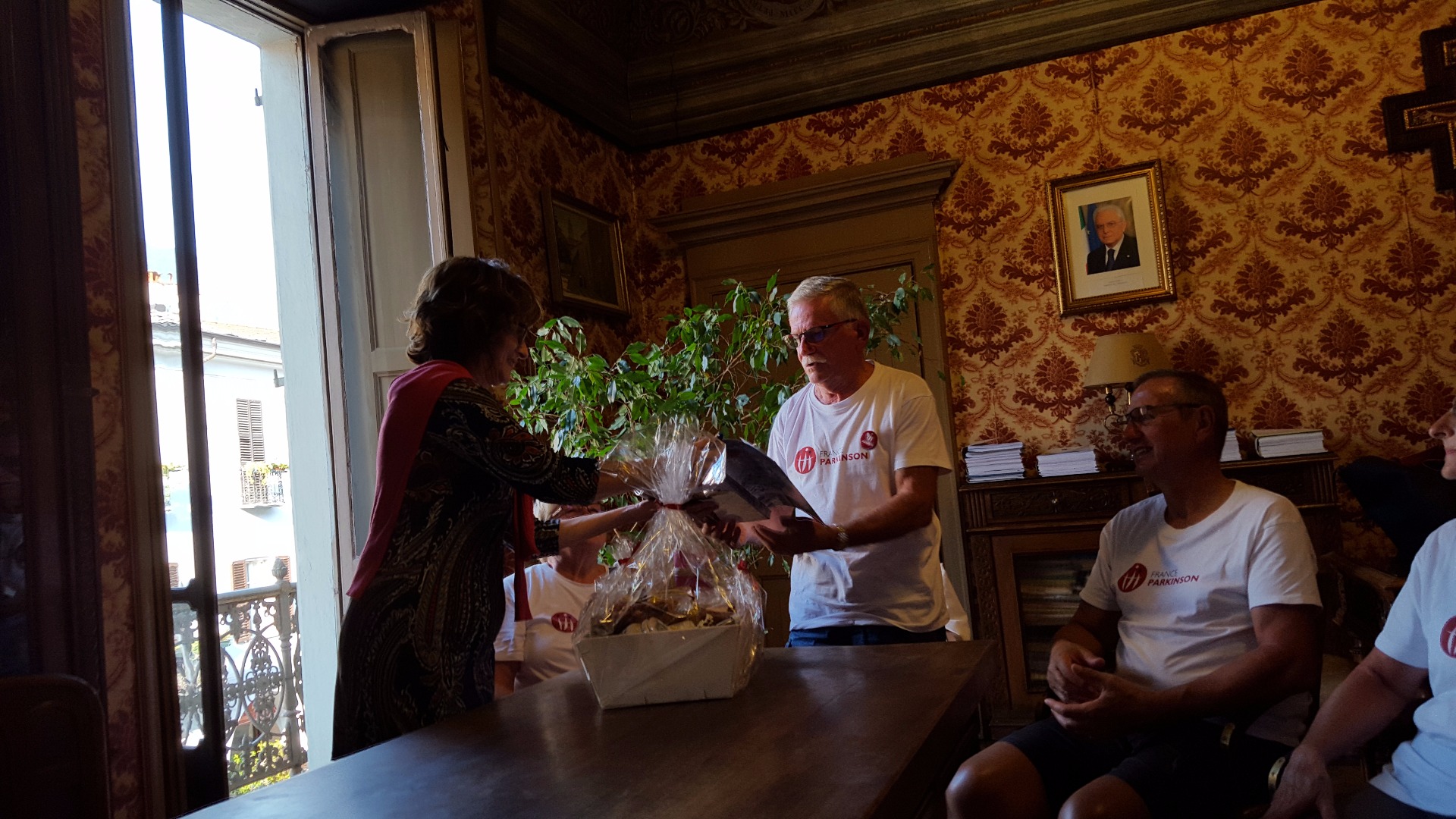 Le soir à notre arrivée, réception à la mairie de Susa où nous sommes reçus par l'adjointe chargée de la culture. Franco reçoit le livre de l'histoire de Susa.