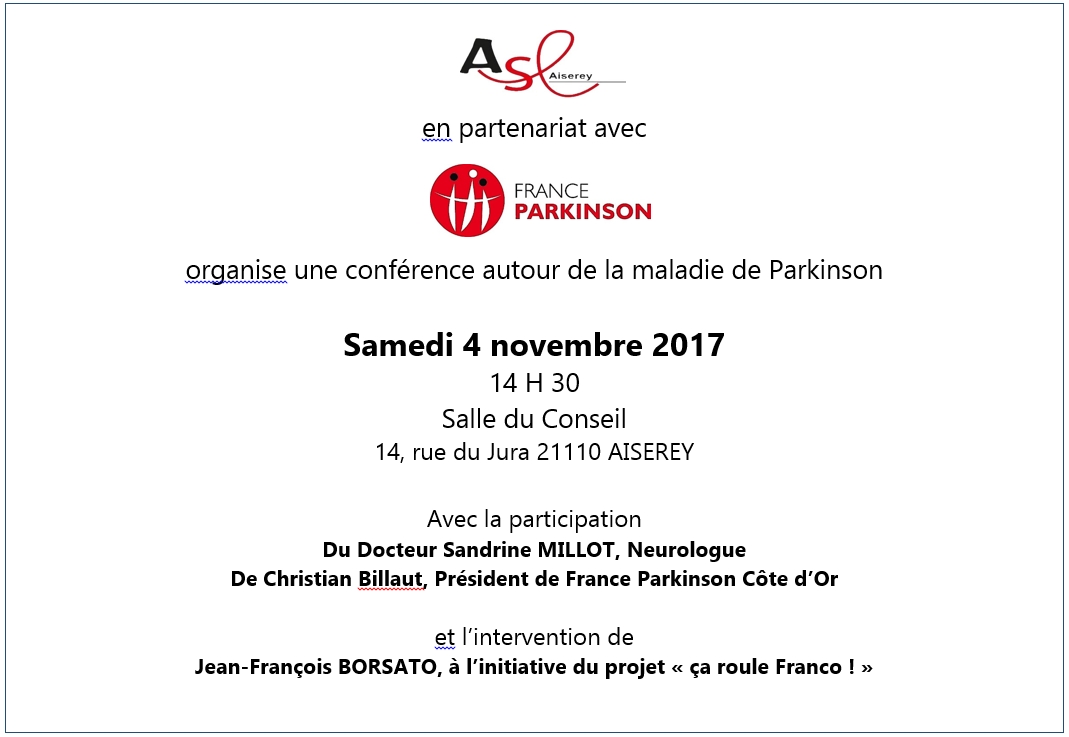 - Organiser une conférence sur la maladie de Parkinson