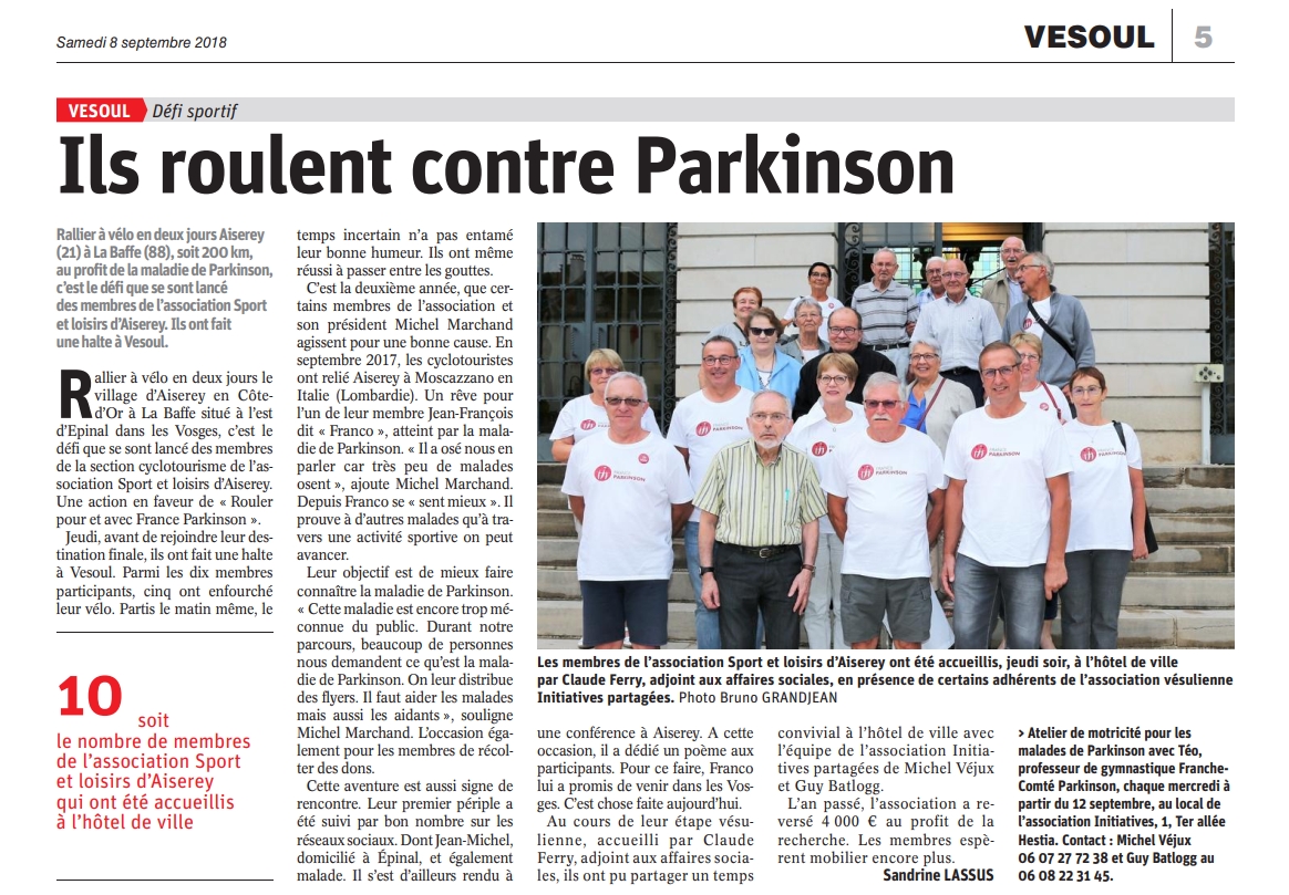 Un ami d'Epinal, atteint de la même maladie, a suivi ce projet sur les réseaux sociaux, et est venu à Aiserey, lors de la conférence finale sur la maladie de Parkinson, et a dédié un poème aux participants.